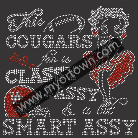 Wholesale cougars football Motif Iron on Hot Fix Iron On Rhinestone Design DIY Iron-On Hotfix Bling for T shirt wholesale price