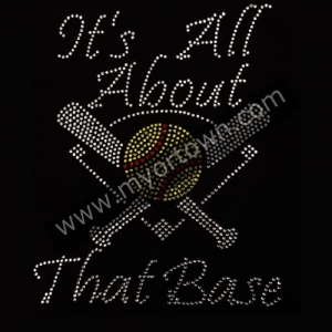 All About That Base Softball Rhinestone Iron on Transfer Bling Design wholesale rhinestone heat transfers, Wholesale 30pcs/lot