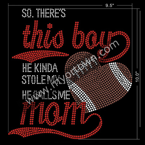 Football He Stole my Heart Rhinestone Heat Transfer Designs wholesale rhinestone heat transfers, Wholesale 30pcs/lot