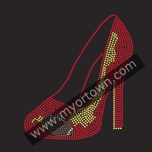 Glod&Red Football heels Iron on Rhinestone Transfer Motif for T shirt wholesale price