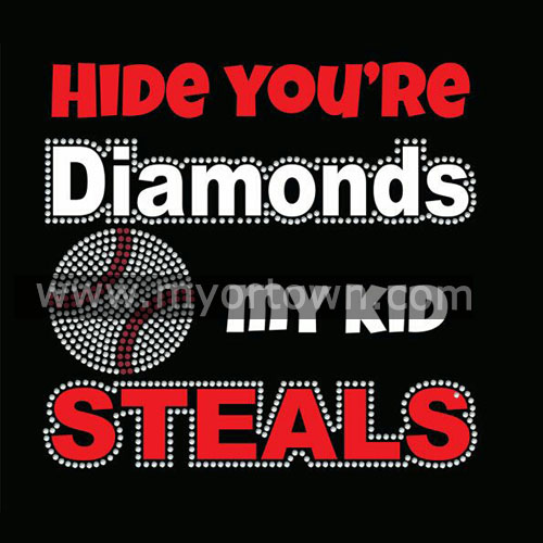 Hide you're Diamonds My Kid Steals Rhinestone Heat TransferFor T-Shirt Hoodies or Garments! Be exquisite in designs and competitive in prices.