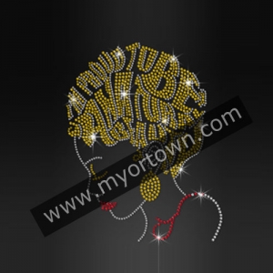 ISS Beautiful Afro Girl Rhinestud Motif For T shirt wholesale heat transfers, Wholesale digital pringting 30pcs/lot