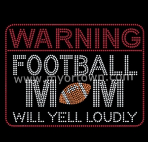 Warning Football Mom will Yell Loudly Iron on Rhinestone Transfer bling Wholesale 30 pcs/lot.Any queries, please email us sales@myortown.com