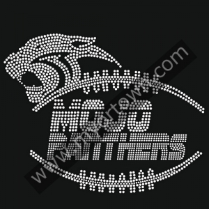 Wholesale Motif Iron on Hot Fix MoJo Panthers Football Rhinestone Transfer Designs for T shirt wholesale price
