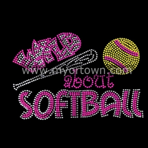 Wild about Softball Rhinestone Transfers Iron On Bling Design wholesale rhinestone heat transfers, Wholesale 30pcs/lot