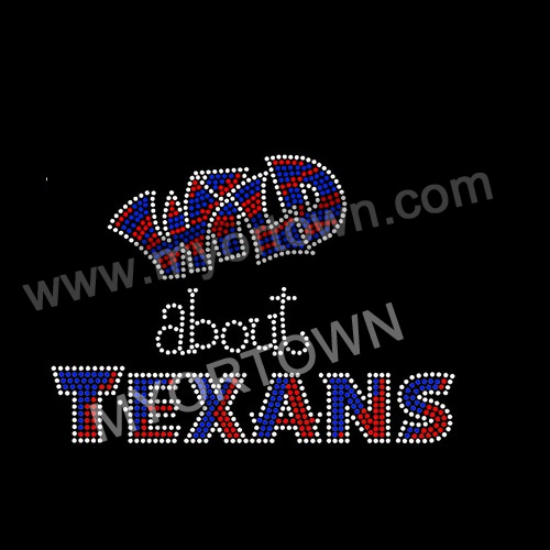 Wild about Texans Text Rhinestone Transfer Iron On wholesale rhinestone heat transfers, Wholesale 30pcs/lot