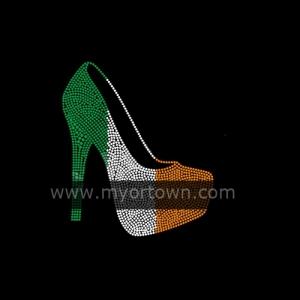 High Heel With Irish Shamrock Rhinestone Transfers For Garment Designs wholesale rhinestone heat transfers, Wholesale 30pcs/lot