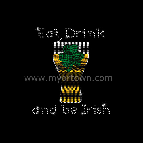 Irish drinks crystal rhinestone heat transfer For Garment Designs wholesale rhinestone heat transfers, Wholesale 30pcs/lot