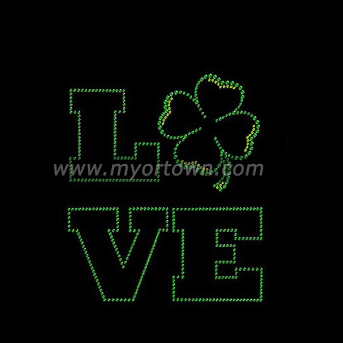 Love Shamrock Iron-on Bling Rhinestone Transfer Design For T shirt wholesale rhinestone heat transfers, Wholesale 30pcs/lot
