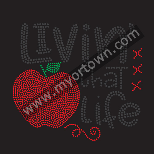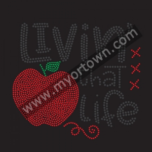 Teacher Apple Livin' That Life rhinestone transfer iron on motif