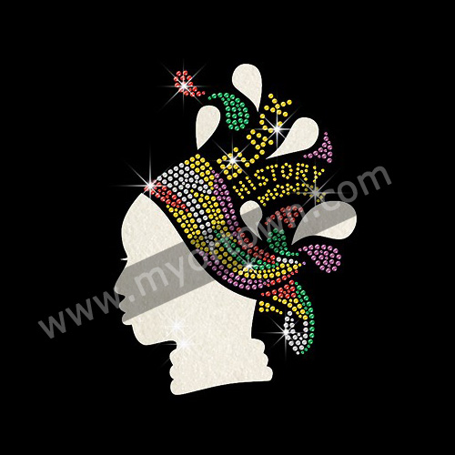 Wholesale Black Girl with Colorful Hair Band Iron on Glitter Rhinestone Transfer Motif