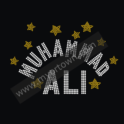 Boxing King Muhammad ALI Hot Fix Rhinestone Motif Decal Design, Wholesale 30pcs/lot