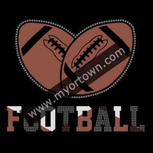 Love Football Heat Transfer In Glitter and Nailhead for T-Shirt 30pcs